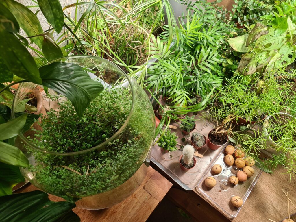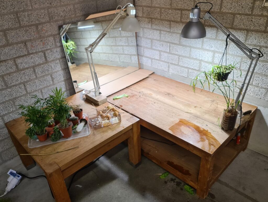 Door er een spiegel achter te zetten, zie je in plaats van de muur de planten nog een keer van de achterkant.
