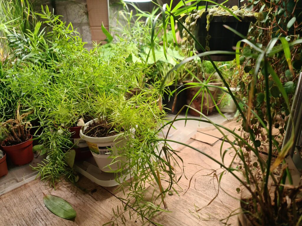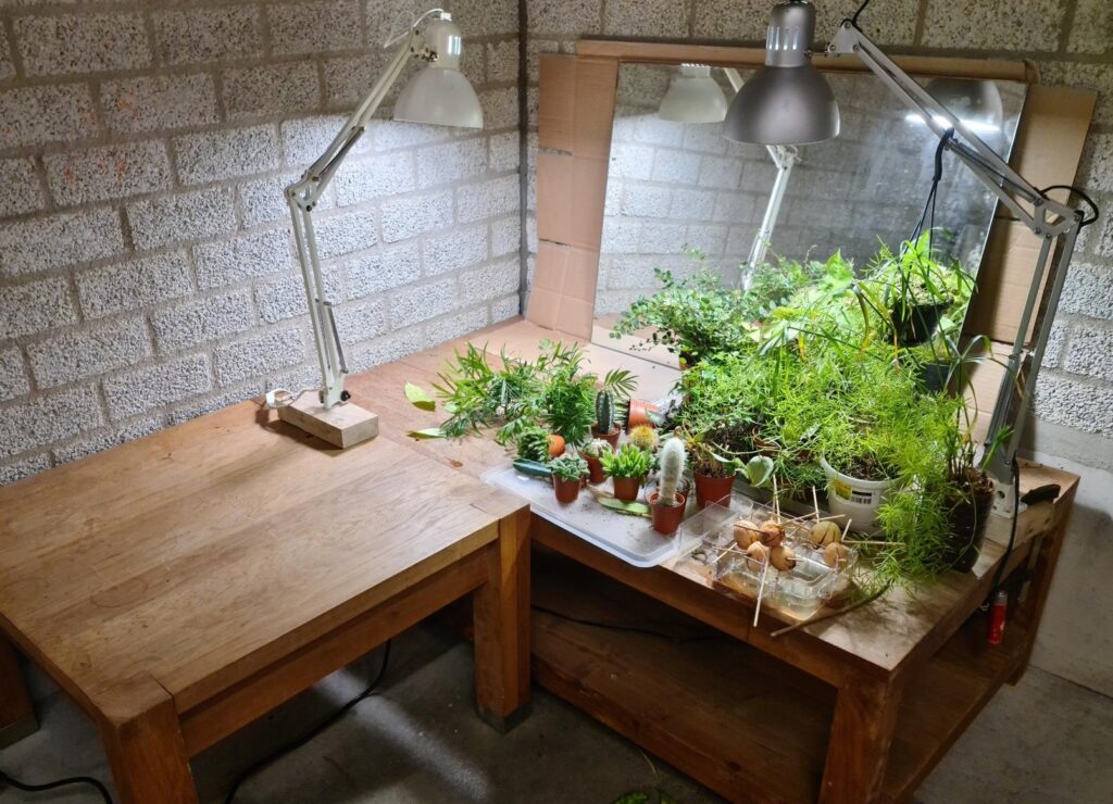 Ik heb er een aantal kamerplanten op gezet, die anders iets te weinig licht zouden krijgen.